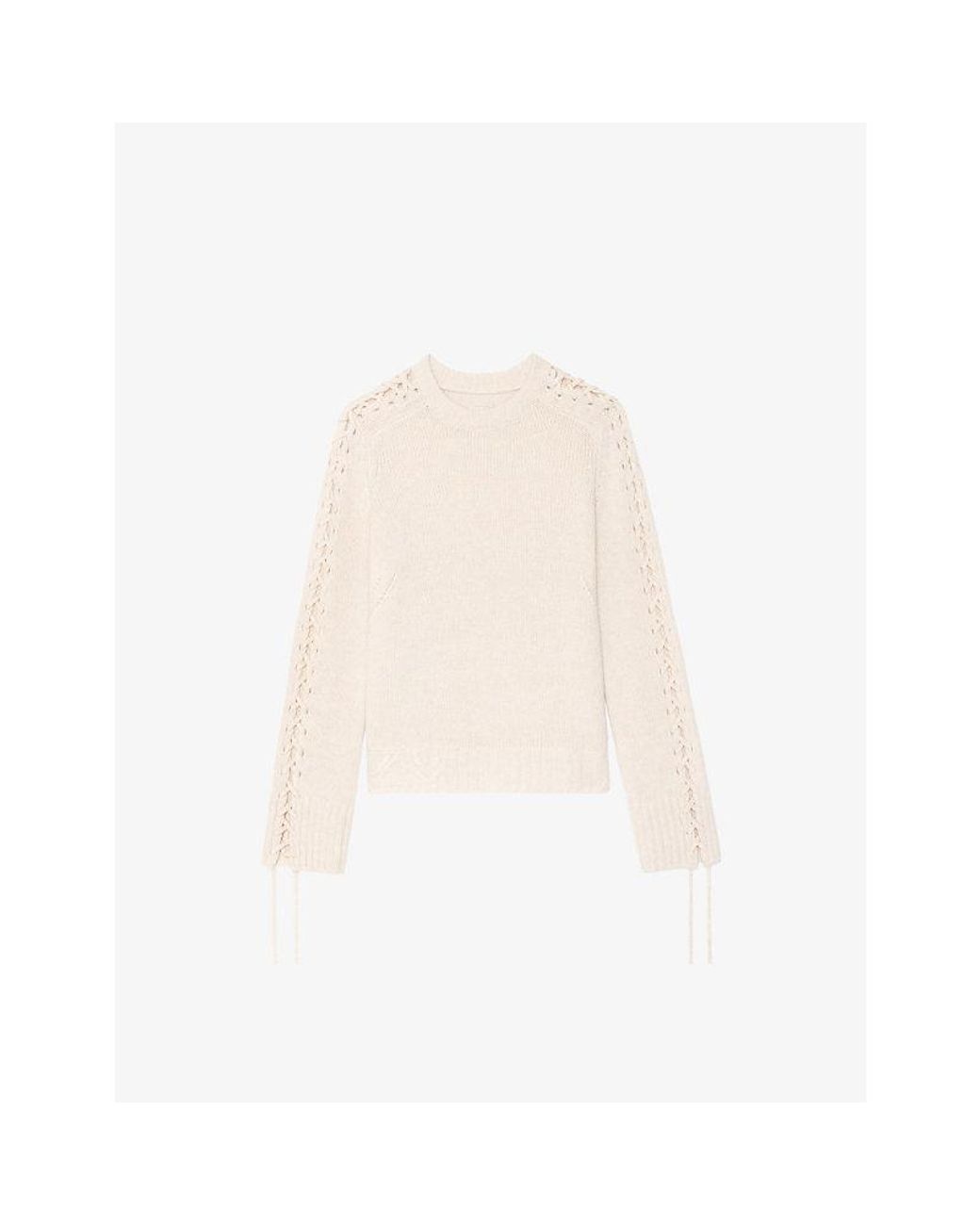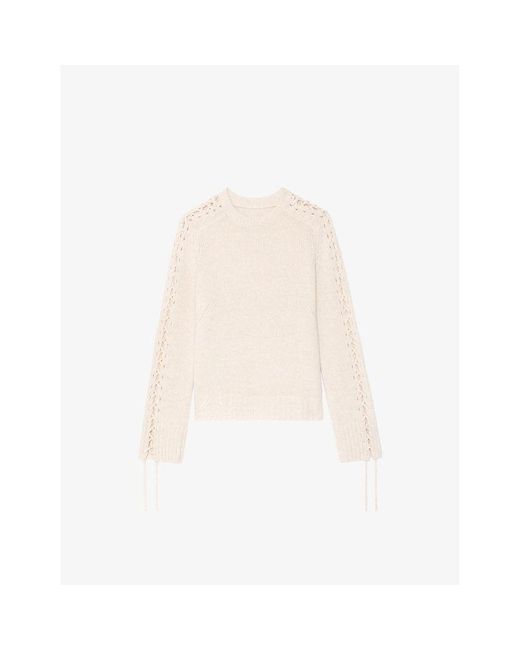 Women's White Malty Lace-Sleeve Wool And Cashmere-Blend Jumper