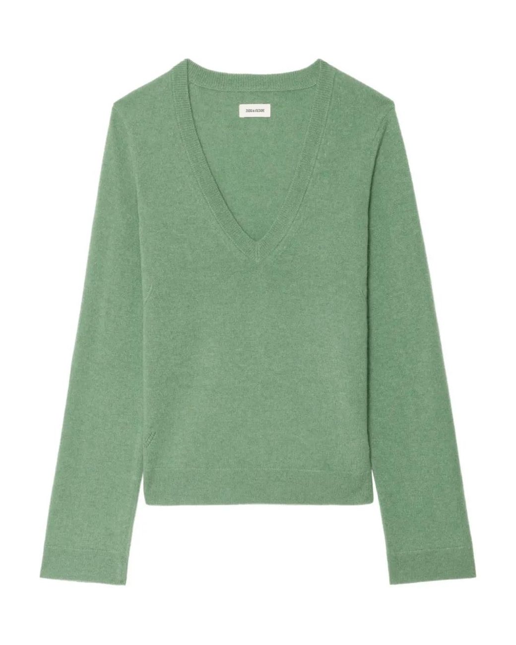Verveine V-neck patch detail long sleeves ribbed hem Size: XS. Gender: Female. Material:Wool/Cashmere. Colour: green