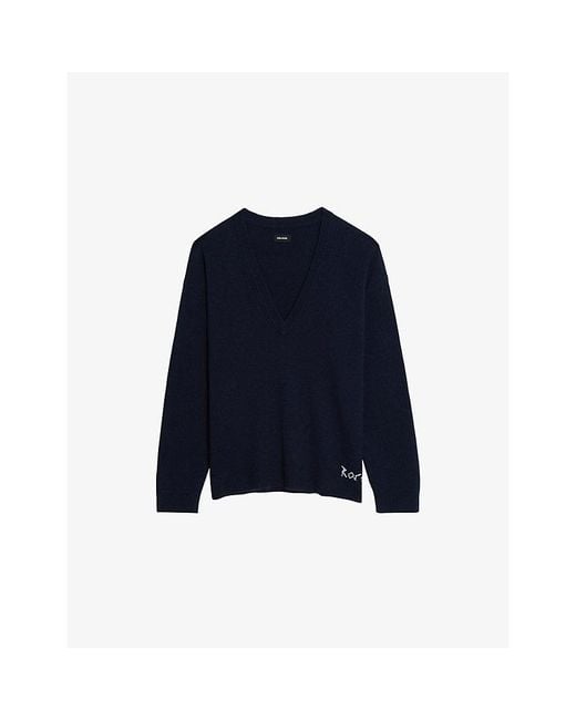 Women's Blue Swyny Logo-Embroidered Wool And Cashmere-Blend Jumper