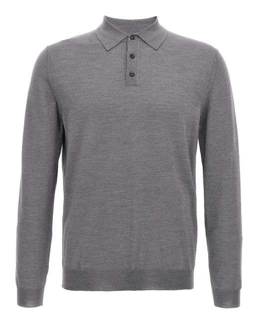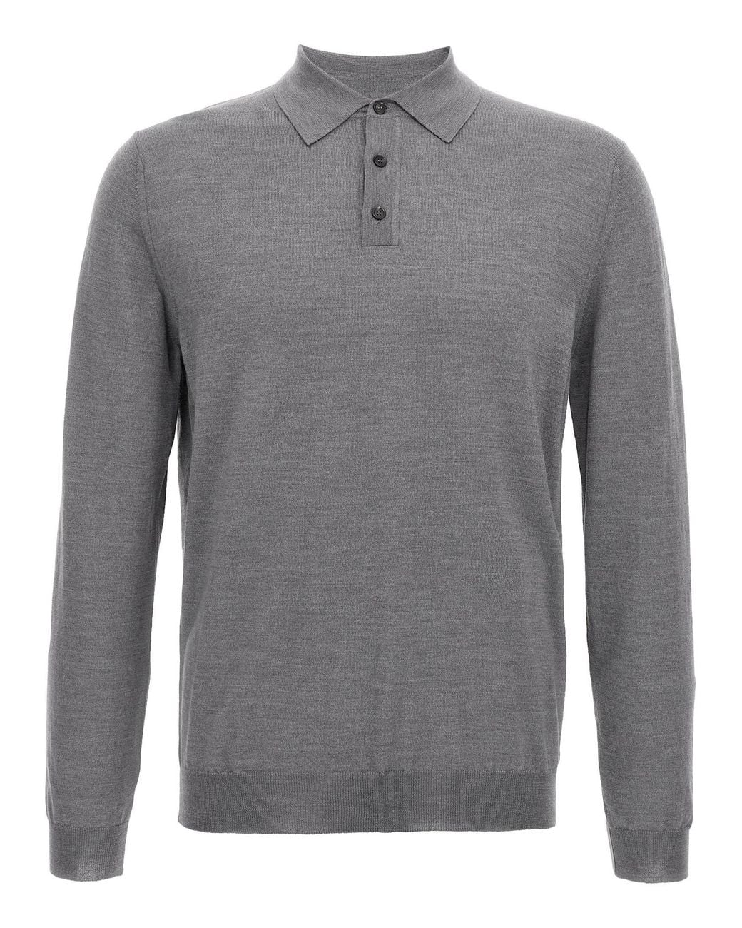 Flexwool wool polo shirt with collar and buttons, long cuffed sleeves. Composition: 70% cachemire 30% silk Colour: grey