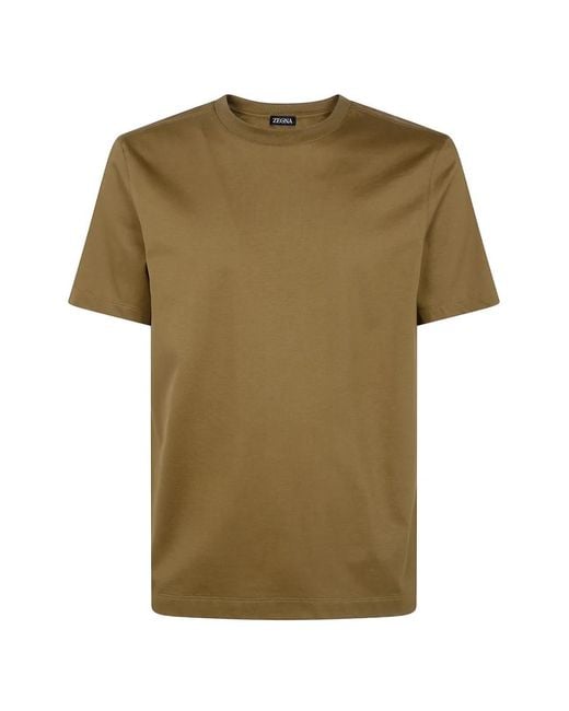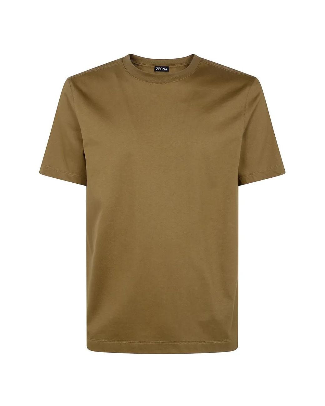 Brown cotton jersey texture crew neck short sleeves logo patch to the rear straight hem Size: 48. Gender: Male. Material:Cotton. Colour: green