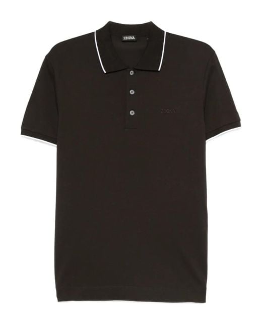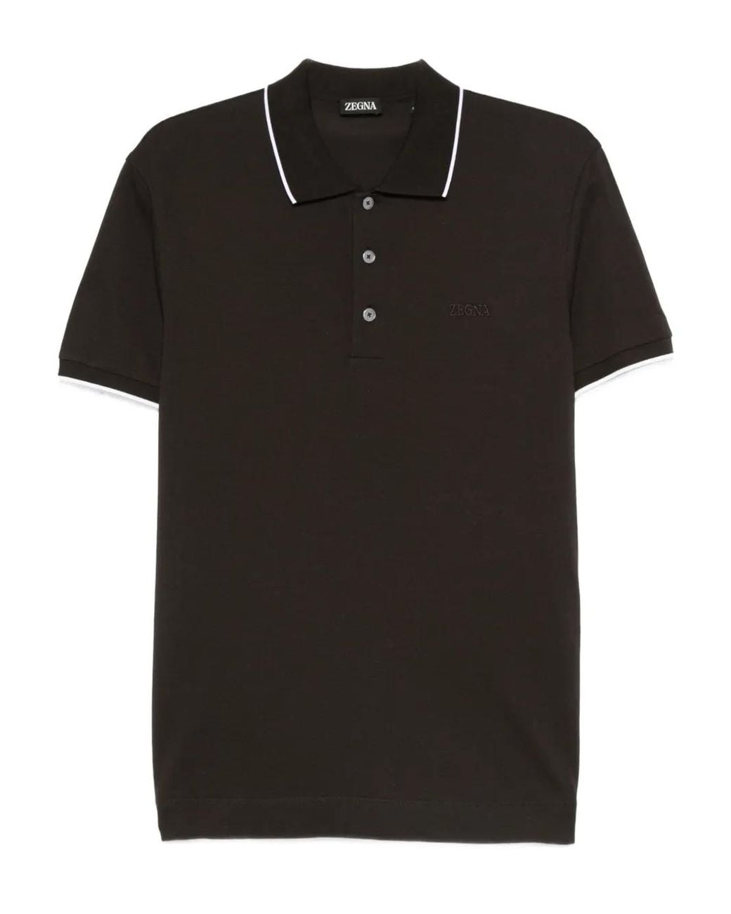 Black short sleeves contrasting trim button placket embroidered logo ribbed collar Size: 48. Gender: Male. Material:Cotton/Spandex/Elastane.
