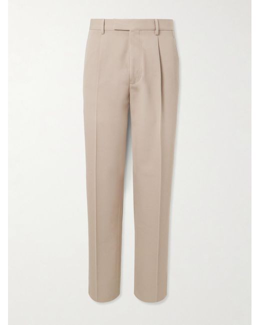 Men's Natural Straight-Leg Pleated Cotton And Wool-Blend Twill Trousers
