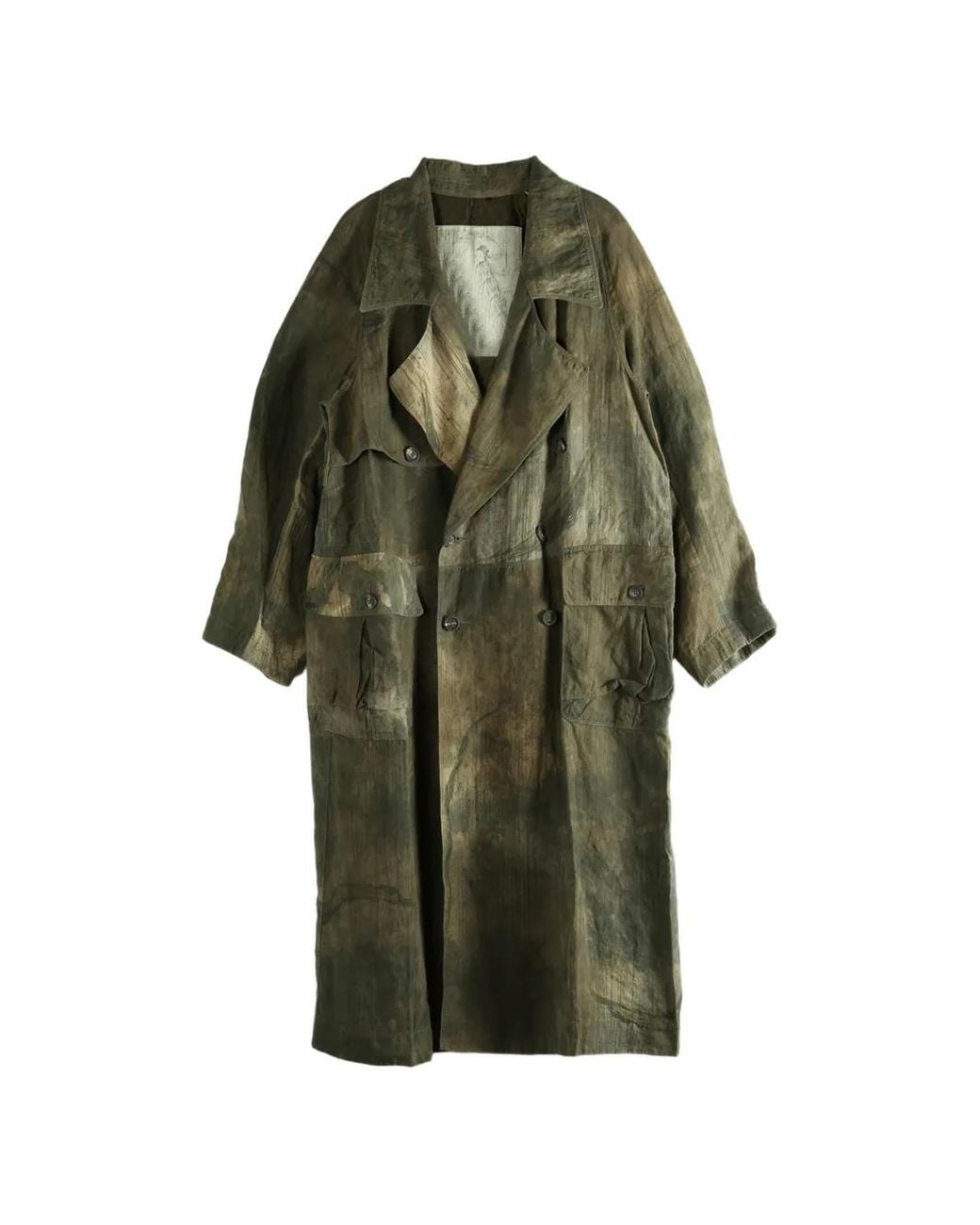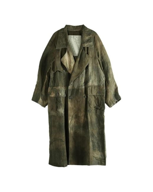 Green/brown distressed effect double-breasted button fastening notched lapels long sleeves buttoned cuffs storm flap two front flap pockets central rear vent Size: 44. Gender: Male. Material:Cellulose Acetate. Colour: green