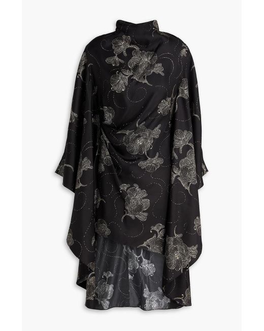 Women's Black Asymmetric Pleated Printed Silk-Twill Tunic