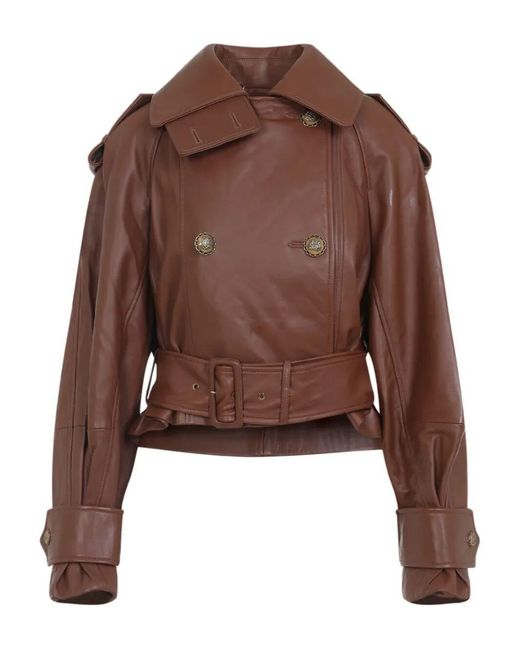 Women's Brown "hypnotic" Leather Crop Trench Coat Clothing