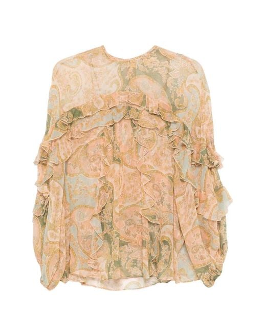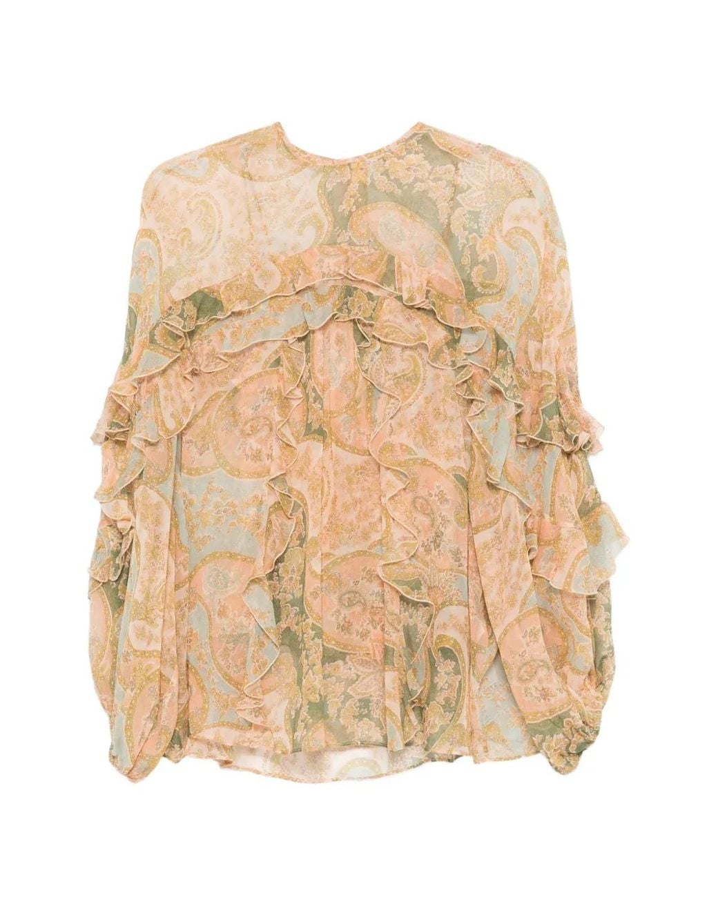 Women's Natural Luna Flutter Ruffled Paisley Blouse
