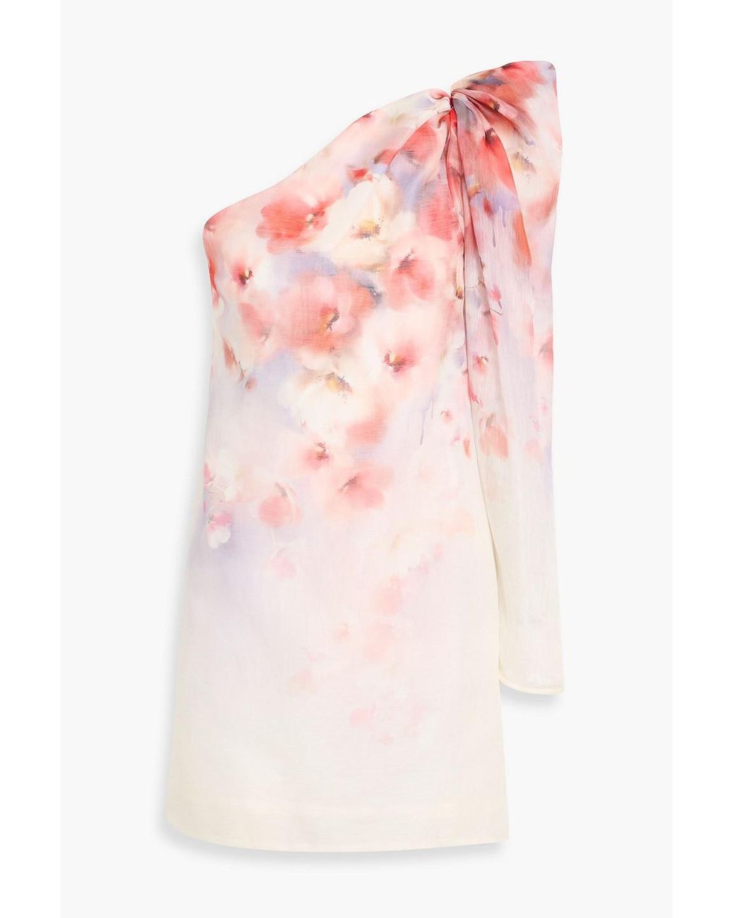 - One-Shoulder Floral-Print Linen And Silk-Blend Gauze Mini Dress