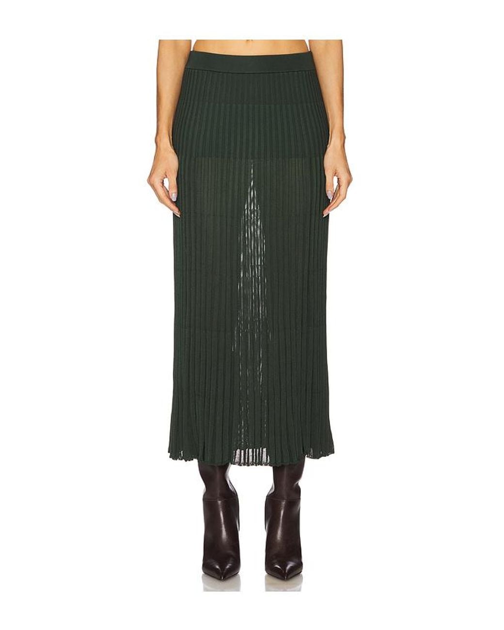 Women's Green Pleated Midi Skirt