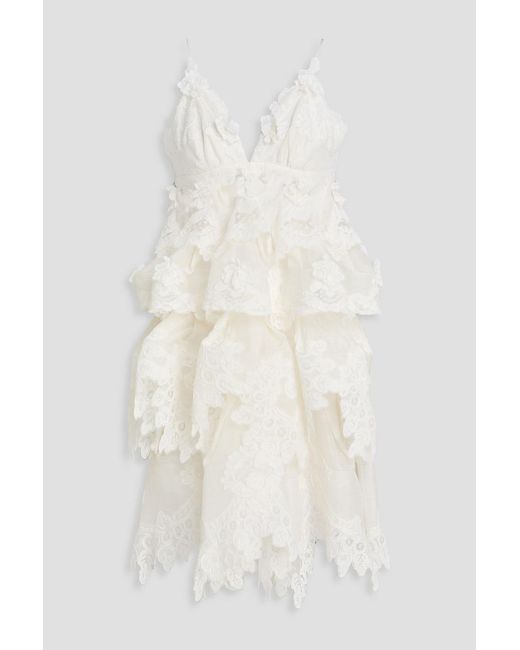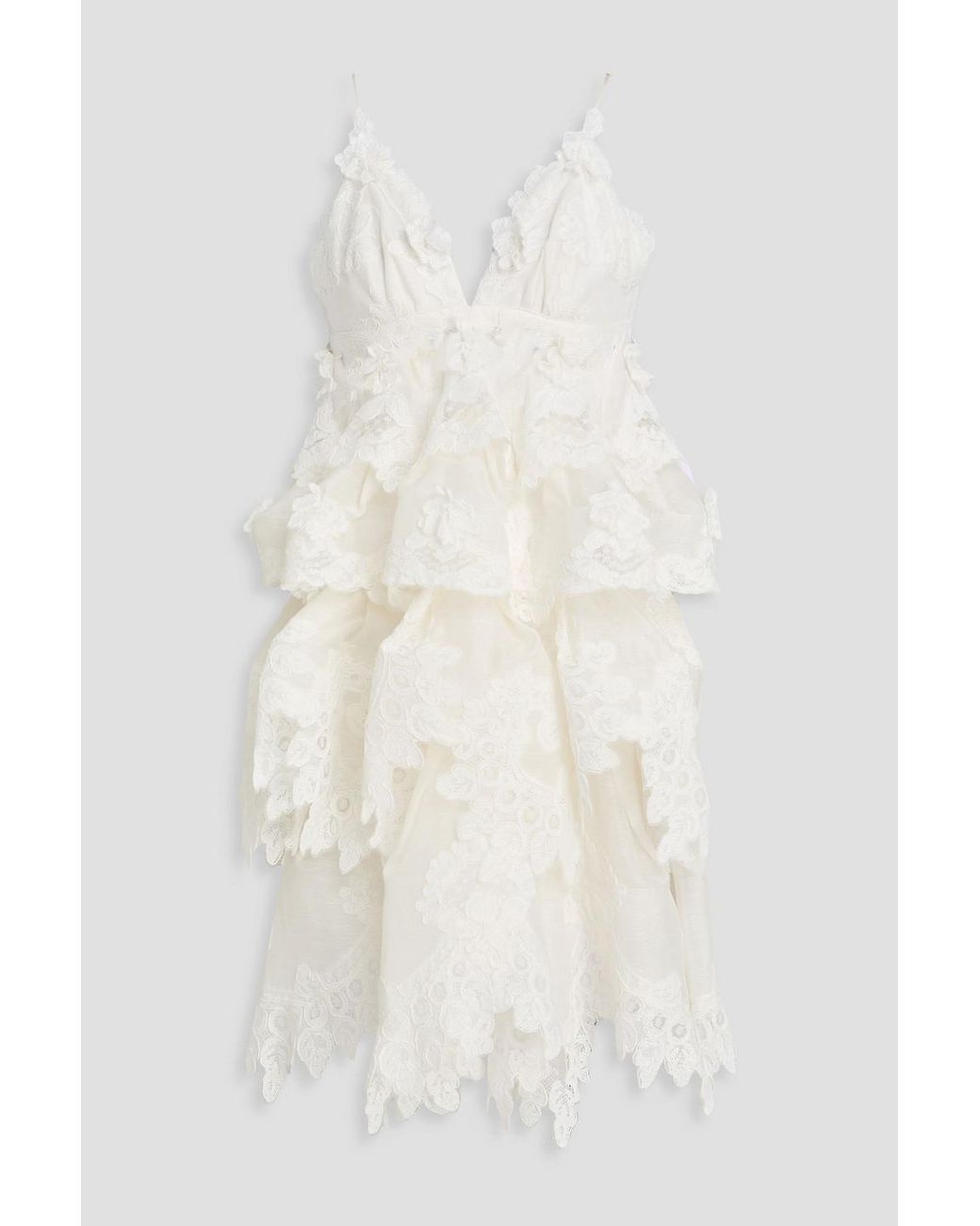 Women's White Tiered Lace-Trimmed Linen And Silk-Blend Gauze Mini Dress
