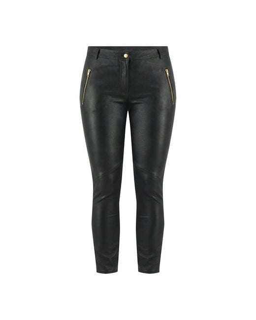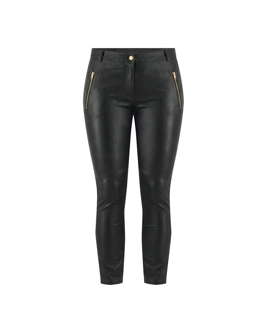 The Leather Trousers are an exquisite and timeless piece designed to combine comfort with a sleek, modern edge. Crafted from soft, stretchable leather, they offer a flattering slim fit that enhances the silhouette while allowing ease of movement throughout the day. The design is finished with a regular waist and length, along with a refined gold button and zipper closure that adds a subtle touch of luxury. Versatile and effortlessly stylish, these trousers are perfect for elevating your everyday wardrobe as well as creating a more polished look for evenings out. Do not wash Do not tumble dry Do not bleach Do not iron Do not dry clean Clean with a soft damp cloth Treat with suitable leather care products to maintain appearance and durability Leather 100% Colour: black