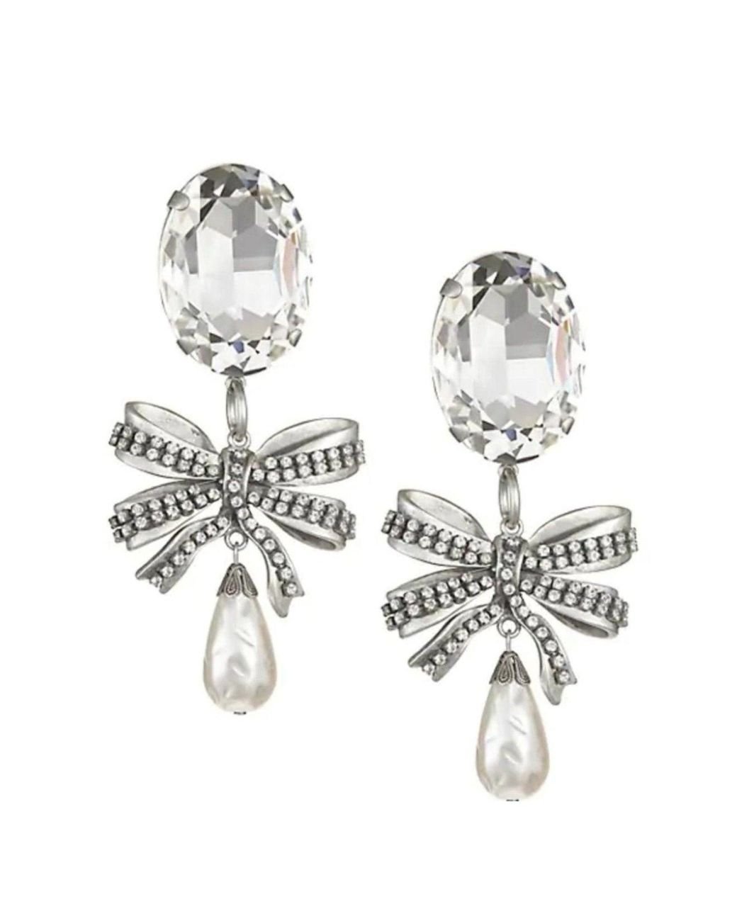 Women's Metallic Crystal Bow Pearl Drop Earring
