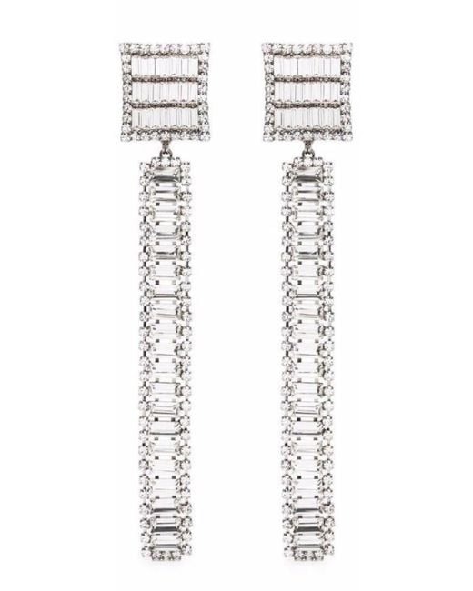 Women's White Long Crystal-embellished Earrings