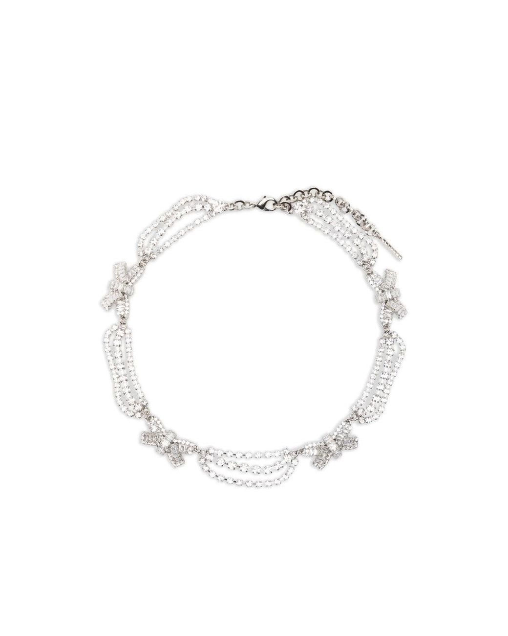 Silver-tone embellished bow details lobster clasp fastening This piece comes complete with a protective dust bag. Silver Plated Brass: 20.0%, Glass: 80.0%.