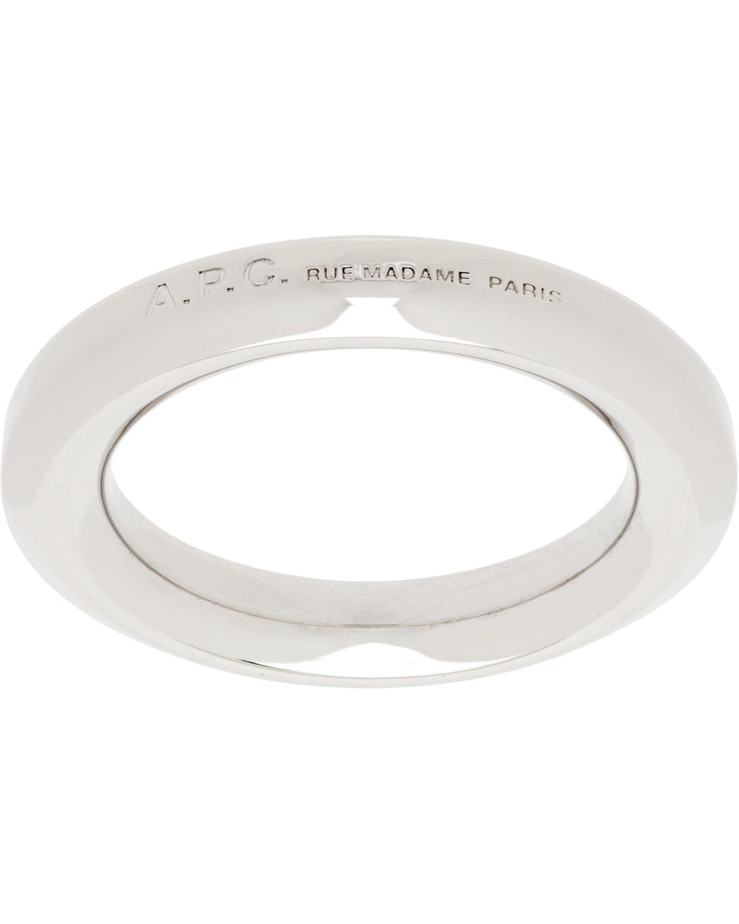 Band ring in silver-tone brass. Logo engraved at face. Supplier color: Silver Colour: white