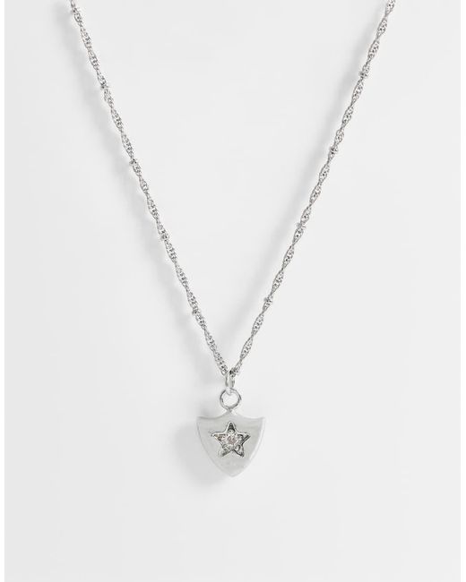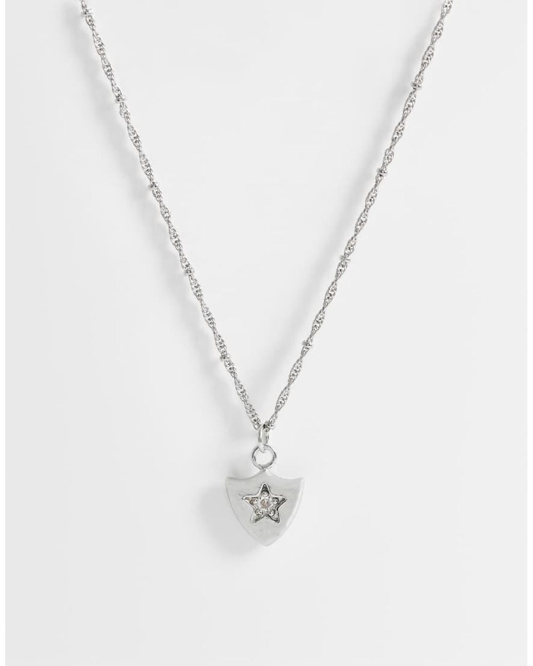 Accessories by ASOS DESIGN Twist chain Shield pendant Stone embellishment Adjustable length Lobster clasp Styled with other products. Each item sold separately Colour: white