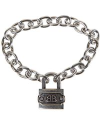 Go to BalenciagaBb padlock necklace in silver and antique silver recycled brass and brass. • recycled brass and brass• necklace• bb logo embossed• padlock clasp closure • made in italy• this item is nickel-free, lead-free,