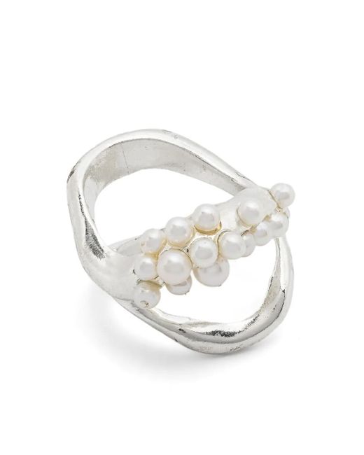 Silver brushed finish freshwater pearls chunky band All products are handcrafted. Size: 6 1/2. Gender: Female. Material:Freshwater Pearl/Silver. Colour: white