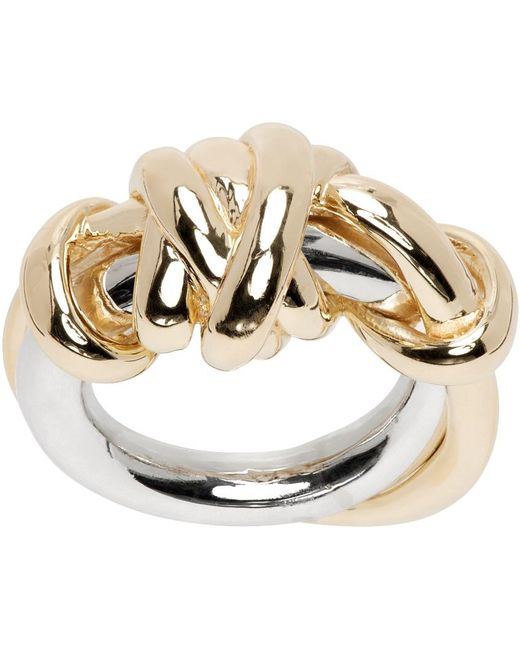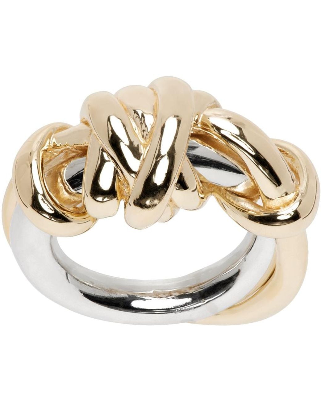 Tiered ring in sterling silver and 18k gold-plated sterling silver. Knotted detailing at face. Supplier color: Silver/Yellow gold Colour: metallic