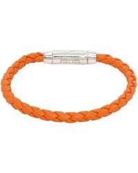 Go to Bottega VenetaSterling silver and braided leather bracelet. Size S length: 20 cm | 7.9". Size M length: 21.5 cm | 8.5". Size L length: 23 cm | 9.1". Color: Redstone. • Material: Lambskin, Sterling