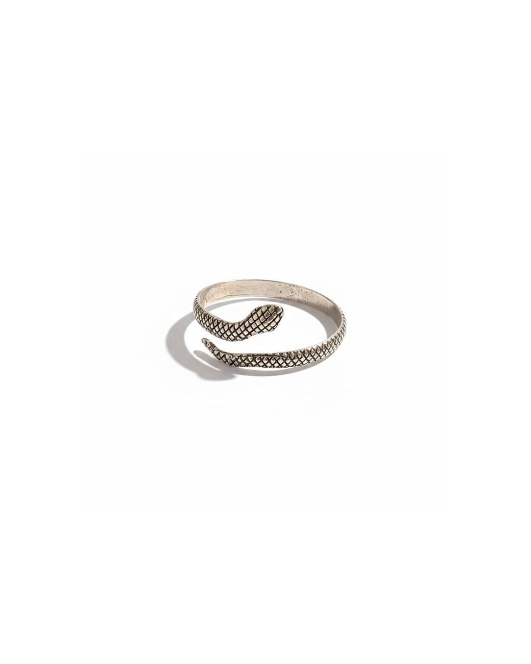 The Althara Ring embodies transformation and bold elegance through its serpent-inspired silhouette — a timeless emblem of rebirth and power. Handcrafted with intricate scale detailing that wraps gracefully around the finger, this piece brings an ancient symbol into the modern world with refined artistry. Made from brass plated with silver, the ring is designed to create a sculptural statement while remaining comfortable and adjustable for everyday wear. Its organic curves and textured finish make it an effortlessly captivating addition to any collection. Avoid direct contact with perfumes, and chemicals. Store in a dry place to preserve its silver finish and detail. Colour: white