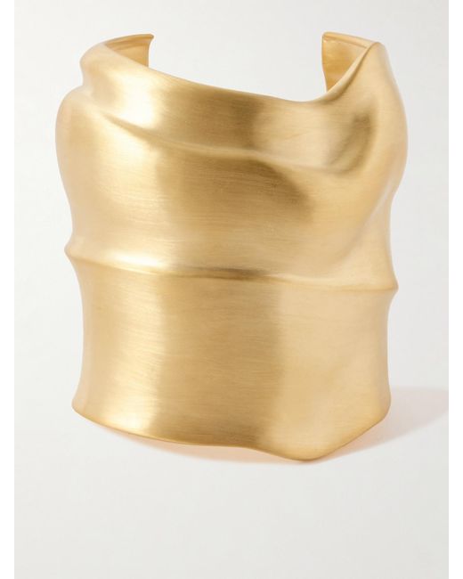 The rippled texture of Completedworks' sculptural cuff is inspired by natural, flowing water pools. Designed to hug the wrist, it's handcrafted from gold-plated recycled-brass that's treated for a satinated finish. Colour: natural