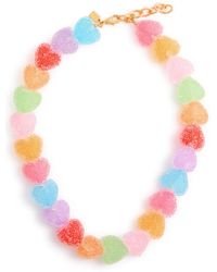 Go to Harvey NicholsInfo & Care Crystal Haze 18kt gold-plated brass necklace Resin heart pendants, textured, designer tag; Adjustable lobster-clasp fastening; Presented in a designer-stamped pouch Size & Fit Length: 45.5cm Colour: red