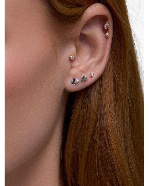 Women's White Bijou Folded Heart Stud Earrings