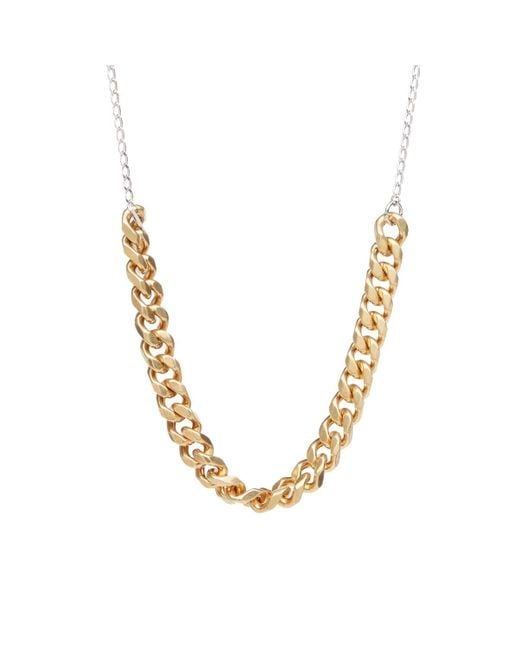 For upgrading your jewellery collection, look no further than this, Dries Van Noten Split Chain Necklace. Made in Italy, it features a curb and box chain design in both gold-tone and silver-tone brass. 100% Brass, Adjustable Lobster Clasp, Logo Plaque, Engraved Branding, Dries Van Noten, - Dries Van Noten Men's Split Chain Necklace Old Brass