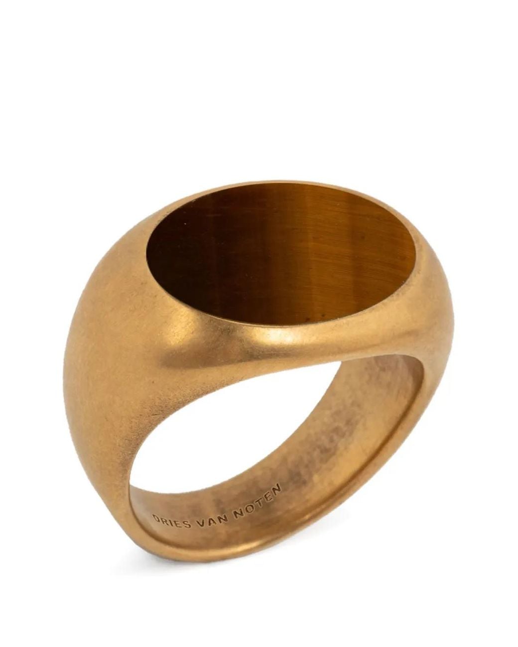 Gold-tone brushed finish signet band tiger eye Size: S. Gender: Male. Material:Brass/Painted Stone. Colour: brown