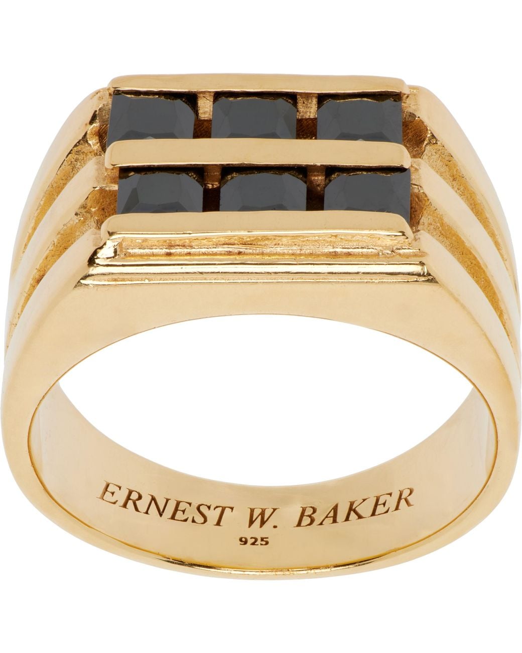 Signet ring in gold-tone sterling silver. · Channel-set black stones at face · Hallmarking at inner band Supplier color: Onyx stone Colour: metallic