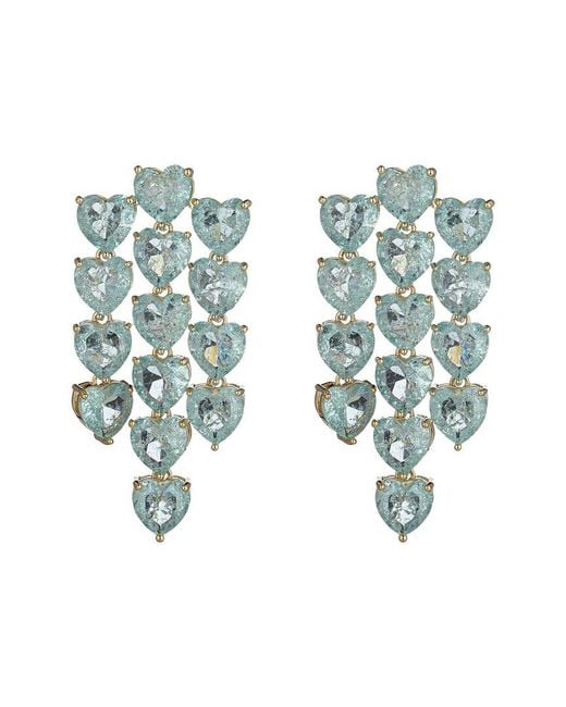 Women's Green Cz Teal Hearts Dangle Earrings