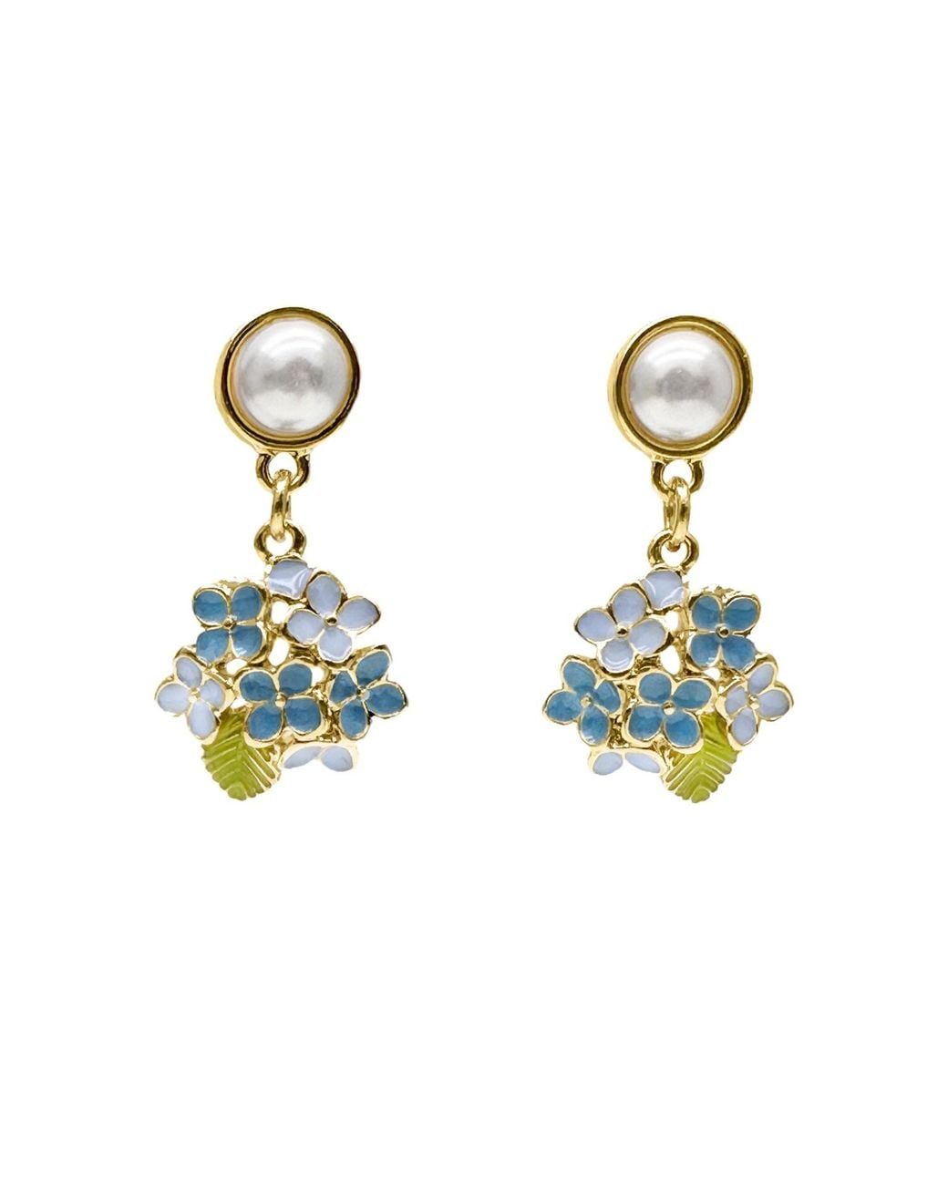 Women's Blue Flower Dangle With Pearls Stud Earrings