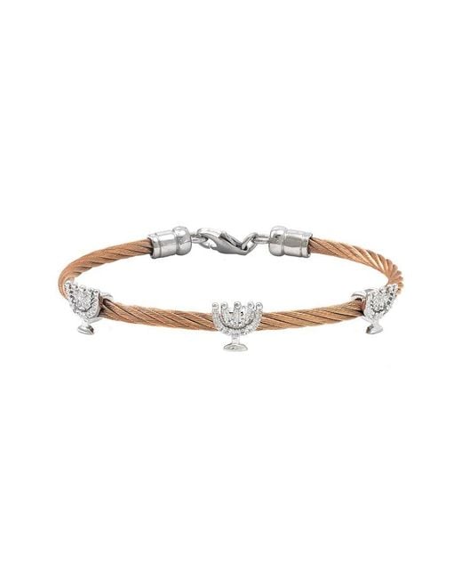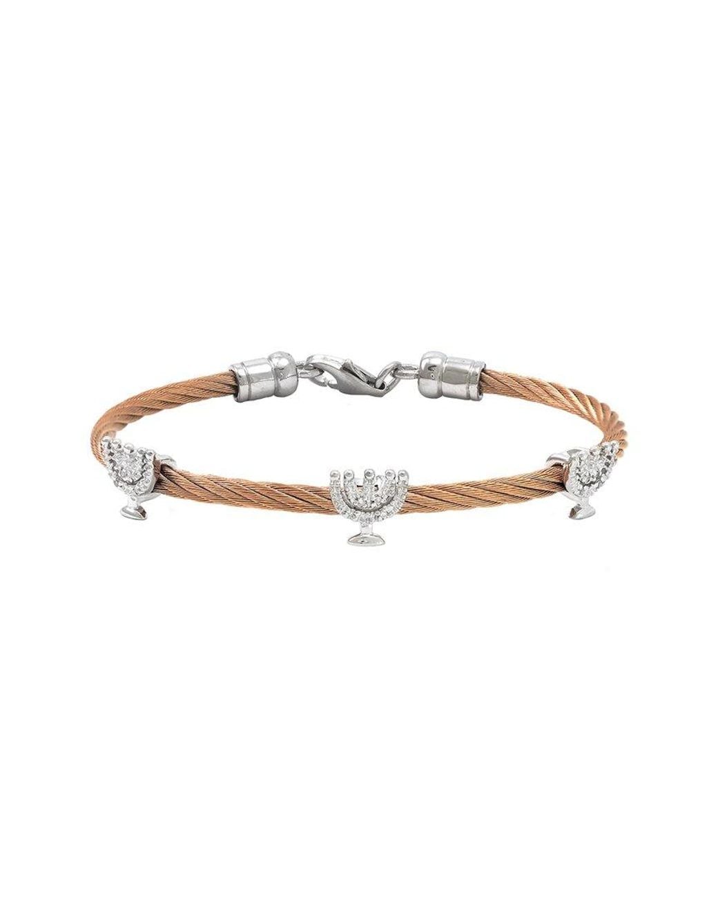 .925 sterling silver and steel Faceted Round-cut Pave-set Diamond = approximately 0.05 ct. tw.; colour = I-J; clarity = SI3-I1 Approximately 7in long Lobster claw clasp closure It is customary to treat most gemstones to achieve enhanced colour and durability. Some of these treatments may not be permanent, and may require special care. Imported Colour: white