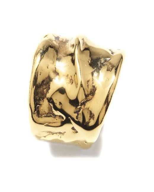 Gold-tone circular body slip-on style hand hammering Normal everyday use and external agents may reduce the lustre of gemstones and gold surfaces. To maintain, use specific, non-abrasive products specially meant for cleaning jewellery. Size: 49. Gender: Female. Material:24kt Gold Plated Brass.