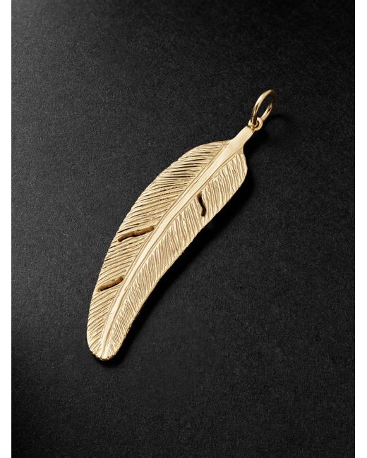 Made in Los Angeles, Jacquie Aiche's jewellery draws on the designer's Native American and Egyptian roots. This large charm has been handmade from 14-karat gold in shape of a feather, thought to symbolise freedom, and is intricately engraved for satin finish. Colour: black