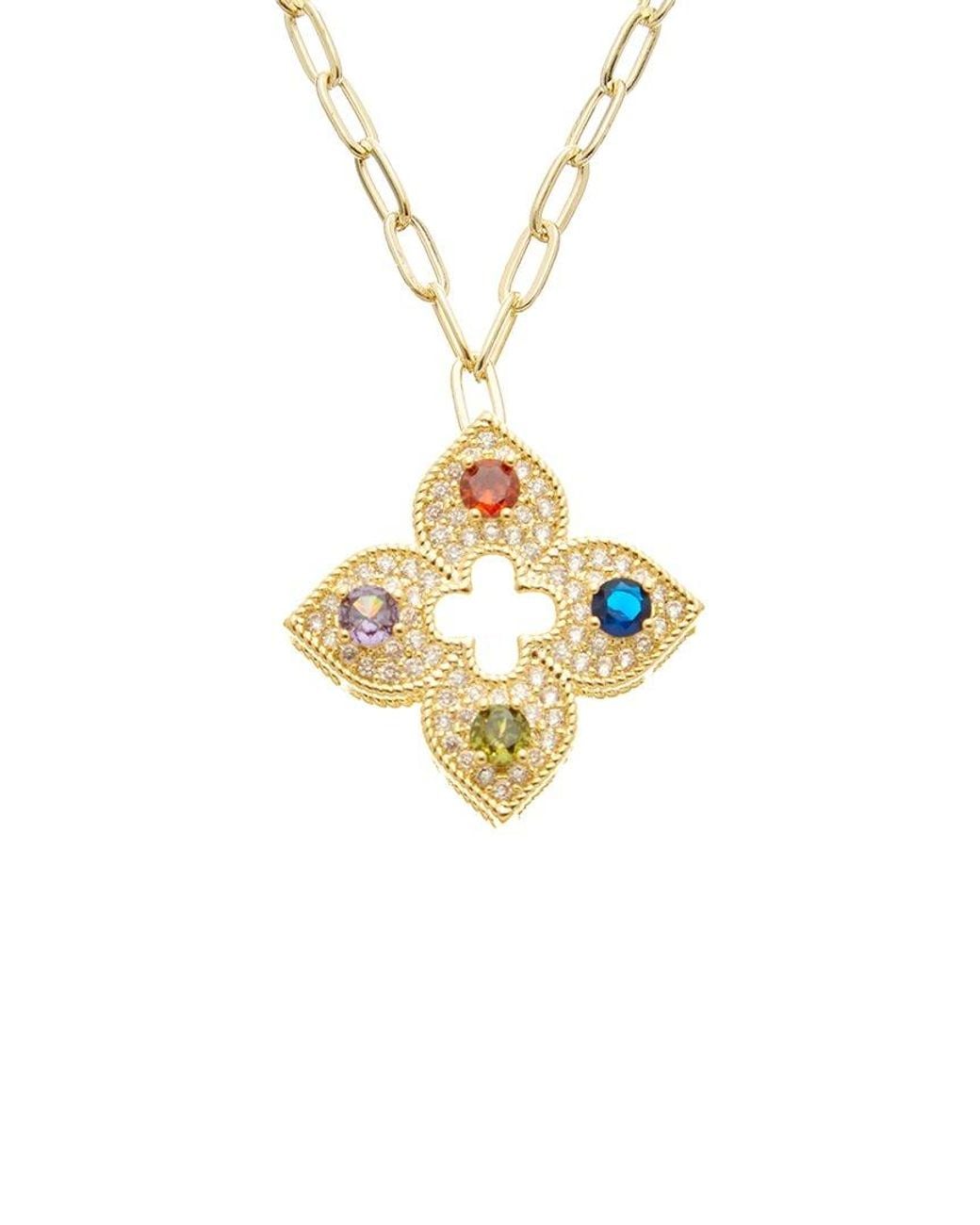 About the brand: Bold jewellery pieces for making a statement. 18-karat Gold Over Brass Cubic zirconia Approximately 16in long with 2in extender Lobster claw clasp Colour: metallic