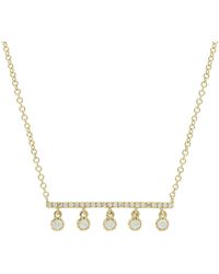 Go to Wolf & BadgerThis thin diamond bar necklace is set in 14k yellow gold with tiny diamonds. It is perfect for layering with our other dainty necklaces, or wearing alone. This bar is a great option