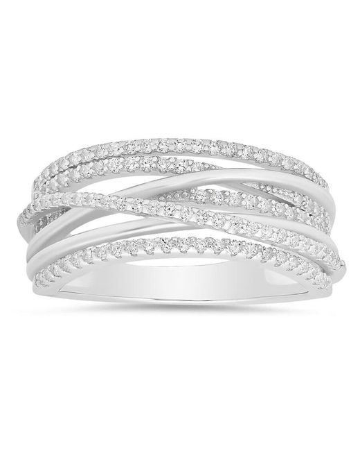 Women's Metallic Sterling Crossover Statement Cz Ring