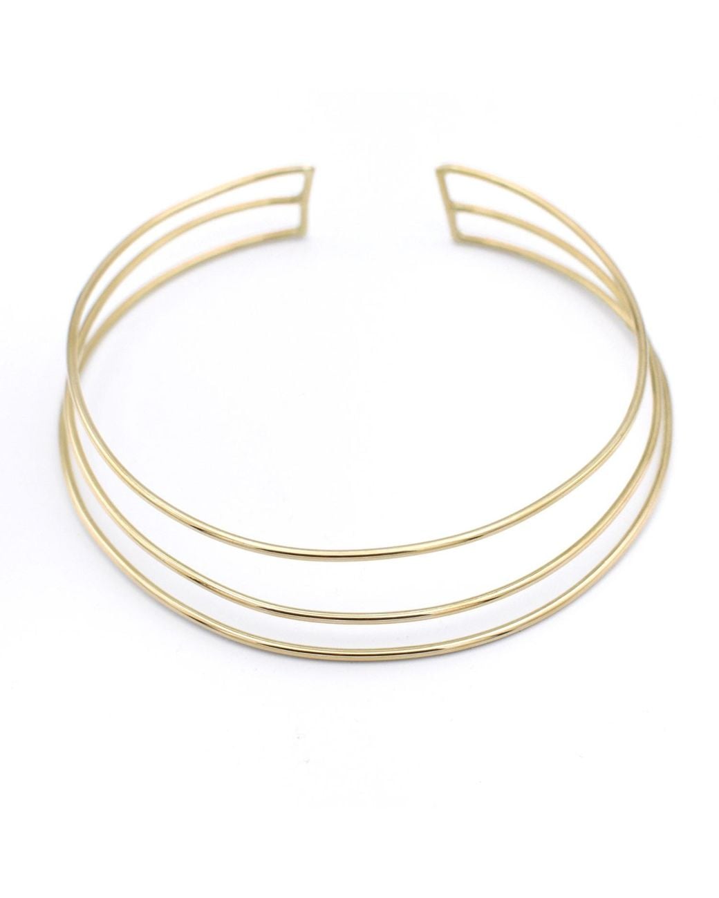 As part of our limited geometric collection; meet our three layered choker. Classic, unique, and a piece of artwork for your neckline. Hand-crafted to perfection, made from brass. The brass matches a yellow gold in colour and tone and we are proud to use recycled brass; it has been used for decades in Africa and is a sustainable alternative to gold - eliminating the need for mining. This metal is also known to have metaphysical properties that allow one to express their true authentic self. Your purchase encourages entrepreneurship and artisan expertise in Africa. Hand-crafted from 100% recycled brass and recycled brass, by artisans in Kenya. It is the nature of brass to evolve over time and some love this more antique look while others prefer the pieces to remain consistent - bright and polished. Clean unwanted tarnish and darker spots using the pro polish pad provided. Simply buff with the pad until the tarnish is lifted and the piece becomes shiny again. Over a longer period of time we recommend using a mix of lemon and water - excellent for removing stubborn marks and tarnish. Colour: metallic