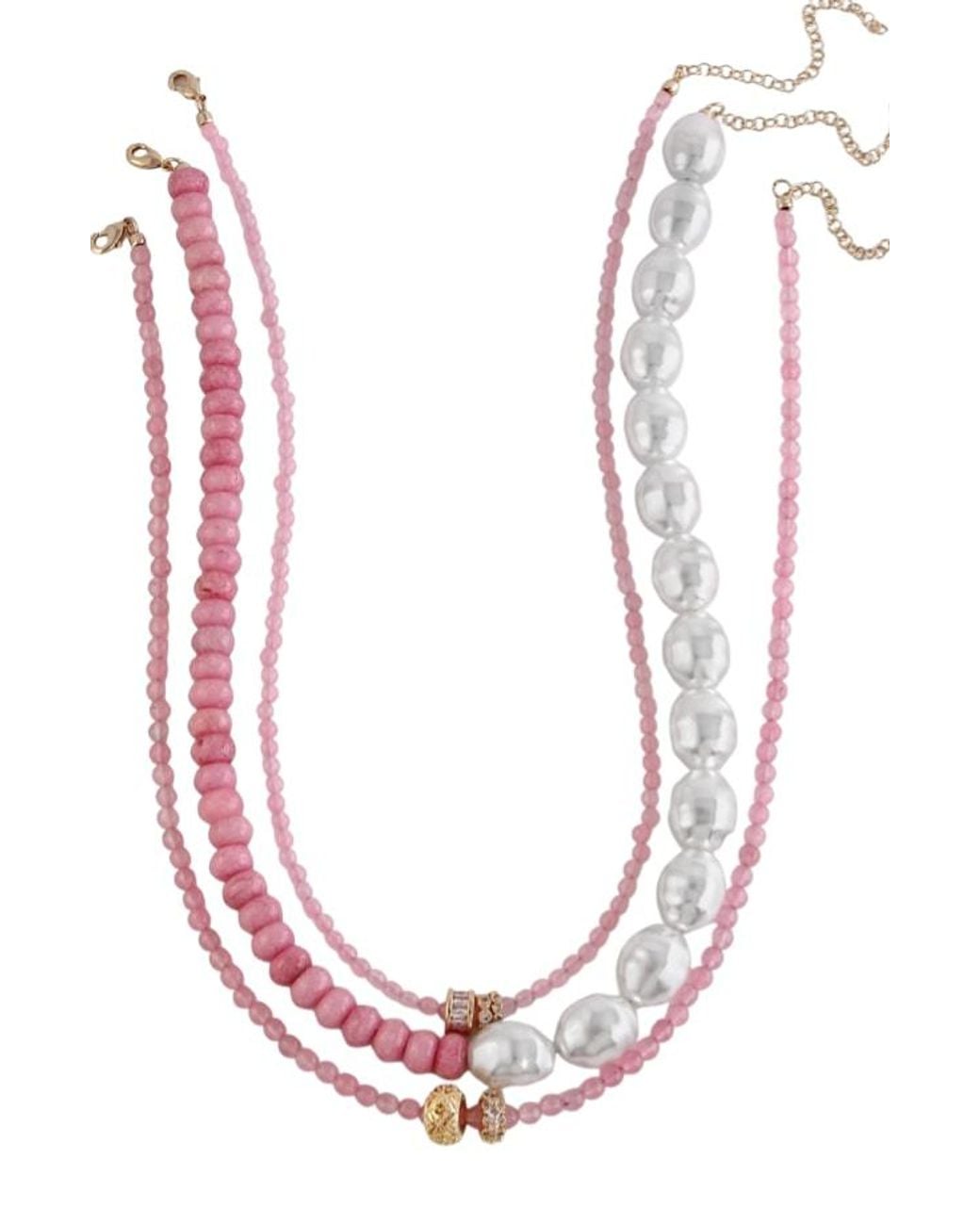 Elevate your jewellery collection with this exquisite trio of natural stone necklaces, each piece crafted to complement your personal style. Wear them layered together for a striking, dimensional look or style each individually for versatile everyday elegance. The carefully selected natural stones bring organic beauty and timeless sophistication to any ensemble, making this set an essential addition to your accessory wardrobe. Avoid water exposure Colour: pink