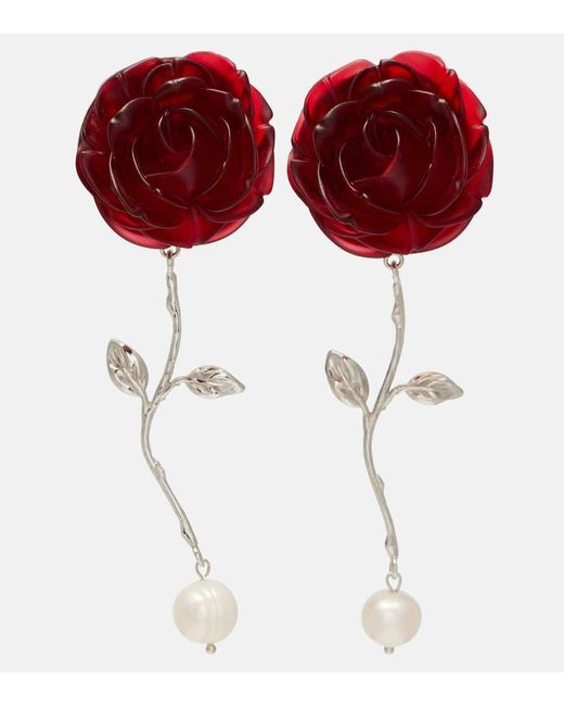 Women's Red Floral Drop Earrings With Freshwater Pearls