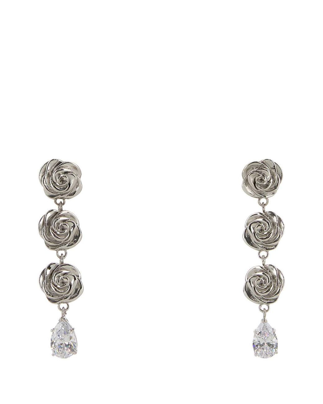 Drop Earrings Floral Design Metallic Finish - Metallic