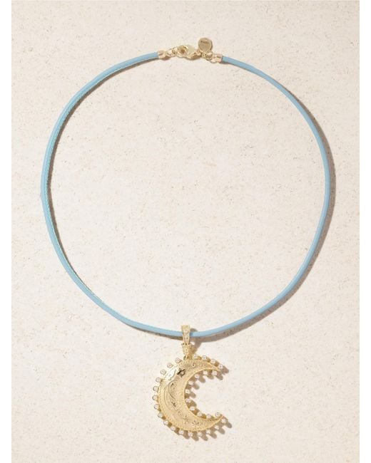 - Large Southwestern Moon 14-Karat, Leather And Diamond Necklace