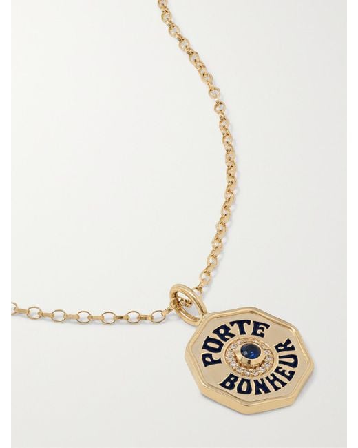 - Mini Porte Bonheur 14-Karat, Enamel, Sapphire And Diamond Necklace