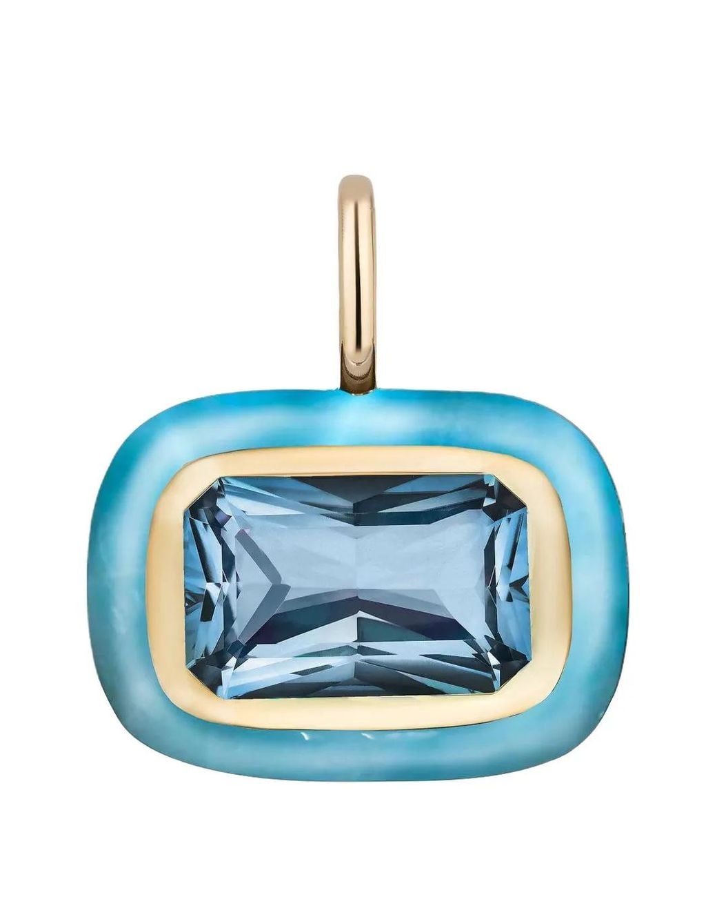 14K yellow gold bezel-set emerald-cut blue topaz 15 carats loop detail Normal everyday use and external agents may reduce the lustre of gemstones and gold surfaces. To maintain, use specific, non-abrasive products specially meant for cleaning jewellery. Size: One Size. Gender: Female. Material:14kt Yellow Gold/Blue Topaz. Colour: blue