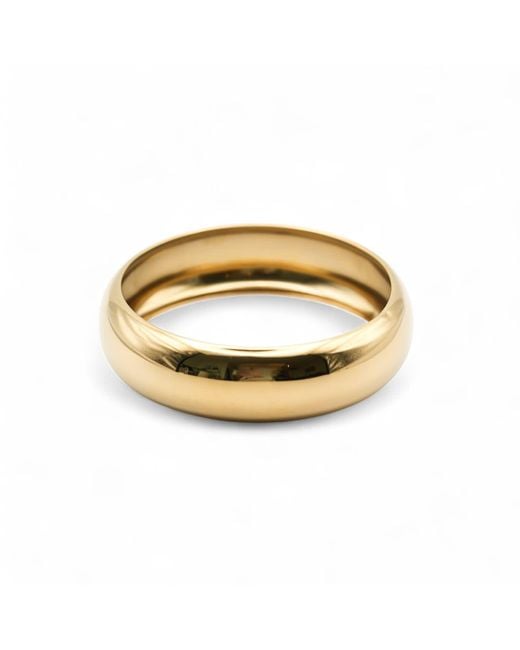 The Eterna Bangle combines classic bold design with a high-polished finish, offering a timeless and minimal accessory. Crafted to fit one size, it will elegantly adorns the upper arm if it is slightly bigger on you. This style is also perfect for a layering look. Materials: 18ct gold plated on stainless steel. Size: Inner diameters: 6cm To keep your jewellery in the best condition, we recommend giving it a good care over time. By using a soft, lint-free jewellery cloth, you can remove blemishes that result from body oils, perfumes and lotions. Also remember try not to expose your jewellery in the open air. Our branded dusty bag or your jewellery box will keep them last longer. If you go to gym or spa, remember to take them off, because water or sweat will also damage them. Colour: metallic