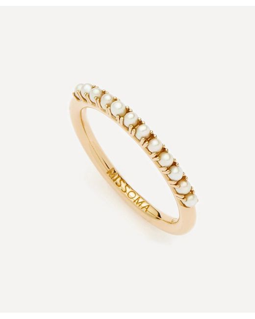 Make every day dressing feel effortless with this subtly elevating half eternity ring from Missoma. Crafted from solid 14ct gold, it features a slim, polished band embellished with opulent freshwater pearls, perfect for any kind of ring stack curation. Style it with other rings or wear solo for a minimal look. Colour: metallic