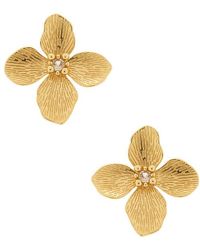 Go to REVOLVENatalie B Jewellery She's A Flutter Earring in Metallic Gold. Natalie B Jewellery She's A Flutter Earring in Metallic Gold. Gold-tone metal butterfly earrings with cubic zirconia and faux pearl drops. Imported. Post-back