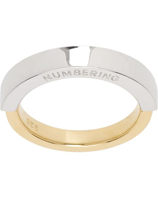 Band ring in rhodium- and 14k yellow gold-plated sterling silver. · Logo engraved at side · Hallmarking at inner band Supplier color: Gold Colour: metallic
